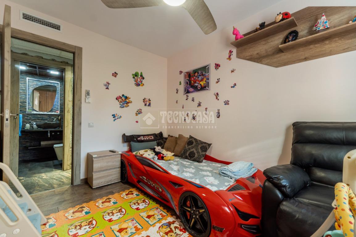 4 dormitorios espaciosos y versátiles, incluyendo un dormitorio principal de ensueño con pared de piedra natural y cabecero en madera artesanal.